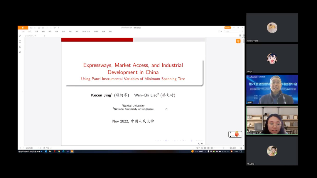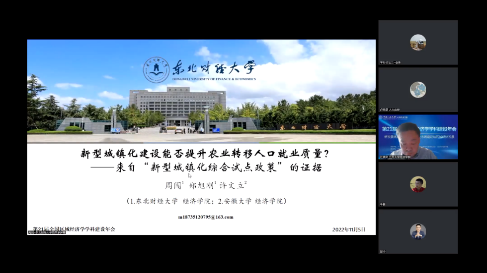 11月5日下午,主题为“高质量发展与城市韧性”、“区域政策与区域发展”和“城镇化建设与区域发展”的三个分论坛同时进行,来自兰州大学、南开大学、中共珠海市委党校、免费色情片 、南京审计大学、东北财经大学、首都经济贸易大学和南昌大学的教师及研究生围绕主题汇报了16篇高质量学术论文。分论坛分别由免费色情片-成人影视片 教授张耀军、南开大学教授李兰冰和兰州大学教授汪晓文主持。