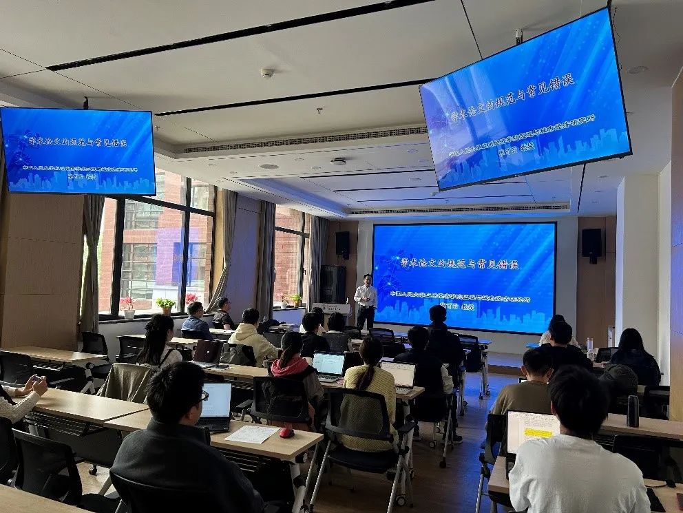 张可云介绍了学术论文的类型、基本规范和要求,按类别结合实例讲解了学术论文写作中的常见问题。张可云强调,在进行学术论文的写作时,任何不规范的行文、小到一个标点符号和引文注释都会折损论文的质量,因此在写作中一定要尽量避免这些常见错误。谈到论文质量,张可云表示一篇优秀的学术论文能因其优美的结构、完善的逻辑和高超的叙述方法而引人入胜,让人读出美感。针对现场同学们提出关于写作中遇到的各类问题,张可云结合自身经验与学生展开探讨并答疑解惑。