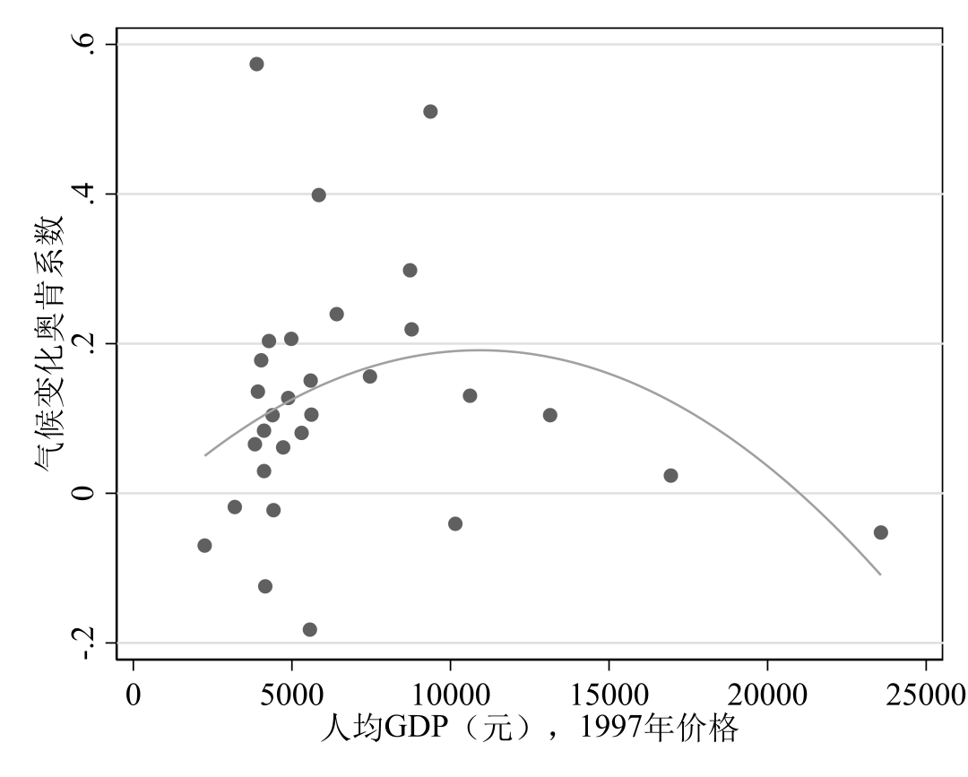 图2 分省份短期气候变化奥肯系数与经济发展水平