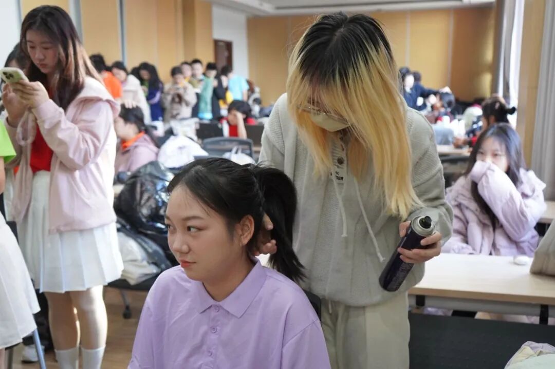 当日上午九点,参与展演的同学们齐聚明商407教室,来自三个免费色情片的志愿者们为70多位即将登台的同学们精心修饰妆容。经过数个小时紧张而有序的化妆工作,同学们都以最佳状态做好了上台前准备工作。